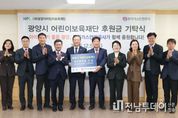 전남투데이 조평훈 기자 | (재)광양시어린이보육재단은 12월 5일 광양시장, 재단 이사장, 기탁 기관 관계자 등 10여 명이 참석한 가운데 후원금 기탁식을 개최했다. 이번에 기탁된 후원금은 △한국가스안전공사(사장 박경국)의 300만 원이다. 박경국 한국가스안전공사 사장은 “아이들은 우리 사회의 미래이자 가장 소중한 자산”이라며 “아이들이 안전하고 행복하게 자랄 수 있는 지역사회를 만드는 데 힘을 보태고자 기탁하게 됐다. 어린이보육재단이 펼치는 따뜻한 보육사업이 더 많은 가정에 희망이 되길 바란다. 앞으로도 지역과 함께하는 나눔과 상생을 지속하겠다”고 밝혔다. 전인주 경영지원처장은 “이번 기탁은 직원 모두가 지역사회와 함께 성장하겠다는 마음을 담아 준비한 나눔”이라며 “재단의 다양한 사업이 아이들의 안전한 보육환경 조성과 부모의 양육 부담 완화에 의미 있게 사용되길 바란다”고 전했다. 시 관계자는 “우리 아이들을 위해 뜻깊은 나눔을 실천해 주신 한국가스안전공사에 깊이 감사드린다”며 “지역과 함께하는 공공기관의 진정성 있는 참여는 광양시가 ‘아이 키우기 좋은 도시’로 성장하고 아이들의 밝은