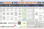 전남투데이 조평훈 기자 | 광양시는 설 연휴 기간 시민과 귀성객의 의료 공백을 최소화하기 위해 오는 2월 14일부터 2월 18일까지 5일간 소아·임산부 및 응급환자를 대상으로 한 비상진료체계를 마련했다고 밝혔다. 시는 연휴 기간 비상진료대책을 차질 없이 운영하기 위해 광양시보건소 내 ‘비상진료대책 상황실’을 설치하고, 의료기관 운영 상황을 상시 모니터링하는 한편, 11명으로 구성된 5개 조를 편성해 응급상황 발생 시 신속한 대응체계를 유지할 방침이다. 연휴 동안 지역 응급의료기관인 ▲광양사랑병원 ▲광양서울병원 등 2개소는 응급실을 24시간 비상체제로 운영하며, 관내 병·의원 105개소, 보건의료기관 6개소, 휴일지킴이 약국 46개소가 문을 열어 의료 서비스를 제공한다. 특히 의료취약층인 소아·청소년과 임산부를 위해 ▲다나소아과의원 ▲미래여성의원 ▲모든아이소아청소년과 ▲큰사랑소아청소년과 ▲선린의원 등 5개소를 중심으로 진료체계를 운영하고, 응급상황 발생 시에는 소방서 119(구급상황센터) 및 권역별 응급의료센터와 연계해 신속하고 안전한 진료가 이뤄지도록 지원할 계획이다. 설 연휴 기간 문 여는 병·의