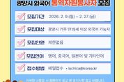 전남투데이 조평훈 기자 | 광양시는 각종 축제와 국제행사에서의 통역 지원과 외국인 민원 안내 등 다양한 분야에서 통역 봉사에 참여할 시민 외국어 통역자원봉사자를 2월 9일부터 2월 27일까지 모집한다고 밝혔다. 모집 대상은 공고일 기준 광양시에 거주하는 만 19세 이상 시민으로, 영어·중국어·일본어를 비롯한 기타 외국어 구사가 가능하면 누구나 신청할 수 있다. 선발된 통역자원봉사자는 매화축제 등 광양시 주요 축제와 각종 대형 행사에서 외국인 대상 현장 안내 및 통역을 지원하게 되며, 관내 기관·업체 협조 요청에 따른 통역 지원, 외국인 관광객 및 광양시 거주 외국인을 대상으로 한 안내·민원 협조 등 다양한 활동을 수행하게 된다. 시는 통역자원봉사자에게 자원봉사 실적 입력 및 관리 서비스를 제공하고, 활동 우수자에 대해서는 표창 또는 감사패 수여, 향후 광양시 명예통역관 위촉 시 우선 고려하는 등 인센티브를 제공할 계획이다. 아울러 국내 통·번역 특성화 대학과 연계해 통역자원봉사자의 전문성을 높이기 위한 온라인 통역 교육도 운영할 예정이다. 신청은 시 누리집 공고·공지사항에서 신청서를 내