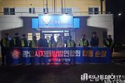 전남투데이 조평훈 기자 | 광양시 골약동사무소는 지난 10일 설 명절을 앞두고 지역 내 범죄 예방과 주민 안전 강화를 위해 골약자율방범대(대장 김동근) 주관으로 야간 합동 방범활동을 실시했다고 밝혔다. 이번 활동에는 골약동 사회단체 회원 등 20여 명이 참여했으며, 골약동 파출소 앞에서 출발해 ▲성황농협 ▲푸르지오 아파트 ▲성황체육관 ▲황금지구 일원 등을 순회하며 주택가 골목길과 상가 밀집지역, 학교 주변 등 안전 취약지역을 중심으로 집중 순찰을 진행했다. 참여자들은 순찰과 함께 ▲불법 광고물 점검 ▲가로등 이상 여부 확인 ▲쓰레기 불법투기 지역 확인 등 생활 안전 점검도 병행하며 주민 체감 안전도를 높이는 데 힘을 모았다. 김동근 대장은 “야간 합동 방범 활동은 주민 스스로 안전 취약지구를 점검하고 예방하는 활동이라는 점에서 매우 뜻깊다”며 “정기적인 활동을 통해 젊은 도시 골약동이 더욱 안전하고 깨끗한 지역으로 발전할 수 있도록 앞장서겠다”고 말했다. 광양시 관계자는 “골약동 파출소와 자율방범대 등 유관 단체와 협력을 강화해 주민들이 안심하고 일상생활을 영위할 수 있도록 주민 밀착형 방범 활동을
