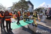 전남투데이 김길룡 기자 | 담양군은 4일 담빛야외음악당 추성경기장에서 열린 ‘제42회 전라남도의용소방대연합회 소방기술경연대회’가 성황리에 마무리됐다고 밝혔다. 전라남도소방본부와 전라남도의용소방대연합회가 주관하고 담양군이 후원한 이번 대회는 도내 22개 시군을 대표하는 의용소방대원과 김영록 도지사, 정철원 담양군수, 담양군의회 의원 등 내외빈 5천여 명이 참여한 가운데 개최됐다. 대회는 화재 대응능력 향상과 기술교류, 대원 간 화합을 목적으로 진행됐으며, 4인조법(이동·전개), 소방호스 전개 및 회수, 심폐소생술(CPR), 단체줄넘기 등 4개 종목에서 열띤 경연이 펼쳐졌다. 종합우승은 나주시 의용소방대가 차지했다. 이날 김영록 지사와 정철원 군수 등 주요 내빈은 시군별 부스를 찾아 대원들을 격려하고, 지역 안전을 위해 헌신하는 모든 참가자에게 감사를 전했다. 담양군과 전라남도의용소방대연합회는 상호 감사패를 교환하며, 대회 협조와 지난 7월 집중호우 복구 지원에 대한 고마움을 전했다. 특히 전라남도의용소방대연합회는 담양군에 고향사랑기부금을 기탁하며 지역 발전과 안전문화 확산에 힘을 보탰다.