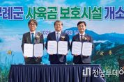 전남투데이 강길수 기자 | 전남 구례군은 지난 9월 30일, 마산면 황전리 일원에 건립한 사육곰 보호시설 개소식을 개최했다고 밝혔다. 이날 개소식에는 이학영 국회부의장, 김순호 구례군수, 금한승 환경부 차관, 주대영 국립공원공단 이사장, 시민단체 대표와 지역주민 등 100여 명이 참석했다. 사육곰 보호시설은 2021년 2월부터 2025년 3월까지 총사업비 100억 원을 투입해 조성됐으며, 사육곰 49개체 수용 가능 규모로 부지 면적 25,744㎡, 격리검역실 1개과 일반사육실 2개, 사무실및교육관 1개, 방사장 3개 시설을 갖추고 있다. 국내 첫 공영 곰 보호시설로, 구례군은 곰 보호와 복지 향상을 위해 전문성을 갖춘 국립공원공단과 위탁 운영 체계를 구축했다. 또한 구례군와 환경부, 국립공원공단은 시설의 안정적인 운영·관리를 위한 업무협약을 체결했다. 김순호 구례군수는 “오늘 개소한 구례군 사육곰 보호시설은 오랜 세월 열악한 환경에서 고통받아 온 사육곰들의 안전하고 따뜻한 안식처가 되고, 우리 사회에는 생명 존중과 공존의 가치를 일깨워주는 상징적인 공간”이라며, “구례군이 곰과 사람이