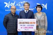전남투데이 강길수 기자 | 구례군은 ㈜녹십초 회장이자 제16대 재경구례군향우회장을 역임한 박형문 회장이 고향사랑기부금 500만원을 구례군에 기탁했다고 밝혔다. 박형문 회장은 지난 2023년 고향사랑기부금 500만원 기부, 구례장학회 장학금 출연 등 남다른 기부 행보로 고향사랑을 몸소 실천하고 있다. 지난 26일 서울 케이터틀 웨딩홀에서 열린 2025 재경구례군향우회 송년의 밤 행사에서 군민과 향우들이 지켜보는 가운데 박형문 회장이 김순호 군수에게 기부금을 전달했다. 박형문 회장은 “항상 사랑하는 구례를 잊지 않았고 고향을 위해 무엇을 할 수 있는지 고민해왔다”며 “이번 기부가 고향사랑기부제 활성화와 구례 발전에 힘이 되길 바란다”고 전했다. 김순호 구례군수는 “아낌없는 고향사랑을 보여주신 박형문 회장님께 깊은 감사를 드린다”며 “향우님이 보내주신 성원으로 연말연시 지역에 온기가 가득하길 기대한다 ”고 말했다. 한편 구례군은 연말연시 기부참여 확대를 위해 적극적인 홍보 활동을 이어가고 있으며, 제1호 기금사업인 지역응급의료기관 지원사업을 시작으로 다양한 분야에서 군민이 체감할 수 있는 고