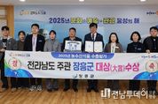 전남투데이 김용희 기자 | 장흥군이 ‘2025년 전남 농수산식품 수출 우수 시·군’ 평가에서 대상(大賞)을 수상했다. 전라남도는 지난 28일 남악 스카이 웨딩컨벤션에서 2025년 농수산식품 수출기업 전진대회를 개최하고, 실적이 우수한 시군 및 기업을 시상했다. 올해 1월 수출 전담부서를 신설한 장흥군은 농수산식품 수출 증가, 수출기업 지원 노력, 신시장 개척 노력 성과 등을 인정받아 대상을 수상했다. 장흥군은 친환경 수출장려금 지원 등 원활한 수출 여건 조성을 위해 ‘장흥군 농수산식품 수출 촉진 지원에 관한 조례’를 제정했다. 해외바이어를 초청하여 수출 상담회를 개최하여 3개국 300만불 업무협약과 5개국 74만불 수출 계약을 체결했다. 또한, 현재 베트남 달랏과 중국 청도 등 2곳에 장흥군 특산품 해외 판매센터를 개설․운영 중이며, 2026년 상반 기 내 남아프리카공화국 요하네스버그에도 해외 판매센터를 추가 개설할 예정이다. 장흥군은 지난 2023년 우수상, 2024년에 우수상을 수상한 데 이어, 올해 대상(大賞)까지 수상하며 3년 연속 수상이라는 의미 있는 기록을 세웠다