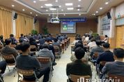 전남투데이 김용희 기자 | 장흥군은 27일 실과소장 및 읍면장 등 공무원 100여 명이 참석한 가운데 ‘공공 유휴부지 태양광 구축에 따른 신재생에너지 설명회’를 개최했다. 장흥군청 대회의실에서 열린 이번 설명회는 그동안 활용도가 낮았던 공공 유휴부지를 찾아서 지역 재생에너지 발전 거점으로 전환하기 위한 취지로 마련됐다. 특히 최근 정부의 ‘에너지전환 및 탄소중립 정책’에 발맞춰, 지역 차원의 에너지자립 기반을 강화하기 위한 구체적인 추진전략이 제시됐다. 한전KDN(주)에서 태양광 발전시설을 공공부지에 설치하여 주민참여 비율, 수익 배분 구조, 환경 영향 등 다양한 내용으로 진행됐다. 장흥군 관계자는 “공공 유휴부지를 활용한 태양광 설치는 단순한 시설 확충이 아니라, 군민이 직접 참여하고 혜택을 공유하는 지역 에너지 전환의 핵심 전략”이라며, “이번 설명회를 계기로 많은 공공 유휴부지를 확보하여 에너지자립율을 높이고 지속가능한 재생에너지 기반을 마련할 수 있도록 관련 사업을 적극 추진하겠다”고 밝혔다. 장흥군은 2026년부터 단계적으로 공공 유휴부지에 태양광 발전 설비를 설치할 계획이다.