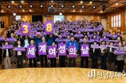전남투데이 박상훈 기자 | 영암군이 13일 가야금산조기념관에서 여성단체협의회 등 군민 150여 명이 참여한 가운데 ‘함께 걷는 영암! 모두가 평등한 도시’를 주제로 세계여성의날 기념행사를 개최했다. 성평등 문화 확산, 여성 권익 증진 등을 취지로 한 이날 행사는 1부 기념식, 2부 젠더 토크 콘서트로 나눠 진행됐다. 기념식에서는 세계여성의날의 의미를 되새기고 지역사회에서 성평등 가치 실현을 다짐하는 시간을 가졌다. 특히 영암군여성단체협의회는 성평등 사회 실현 다짐서를 발표하며 지역사회의 노력을 약속하고, 모션 포토 퍼포먼스로 행사 주제를 높였다. 젠더 토크콘서트에서는 이진아 강사가 초청돼 일상 속 성평등 인식, 지역사회 실천 방안 등을 내용으로 소통했다. 전희자 영암군 가족행복과장은 “세계여성의날을 계기로 성평등의 가치와 의미를 다시 한번 되새기고, 모두가 존중받는 평등한 영암을 만들기 위해 지속적으로 노력하겠다”라고 말했다.