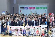 전남투데이 박동운 기자 | 강진군이 지난달 25일 강진국민생활체육센터 제2실내체육관에서 ‘2025 강진군 다문화가족 어울림 한마당 축제’를 다문화가족과 이주노동자, 유학생 등 400여 명이 참여한 가운데 성황리에 마무리했다. 이번 행사는 강진군이 주최하고 강진군가족센터(센터장 조미아)가 주관했으며, 다양한 문화가 어우러지는 지역사회의 화합과 교류의 장으로 마련됐다. 행사는 강진고등학교 밴드부 ‘중장비’ 팀의 공연으로 시작됐으며, 기념식에서는 모범 가족 및 유공자에 대한 강진원 군수의 표창이 이어졌다. 강진원 군수는 “강진은 다양한 문화가 어우러지는 따뜻한 공동체이며, 다문화가족이 지역의 당당한 일원으로 안정적으로 정착할 수 있도록 앞으로도 정책적 지원을 아끼지 않겠다”고 밝혔다. 이번 표창은 다문화가족이 군민으로서 자긍심을 갖고 지역사회에 안정적으로 정착하는 데 큰 의미가 됐다. 점심시간에는 한국, 베트남, 일본, 중국, 필리핀 등 다양한 나라의 전통 요리가 제공된 ‘음식 문화부스’가 운영돼 참가자들의 큰 호응을 얻었다. 이후 트로트 공연, 마술쇼, 명랑운동회, 행원권 추첨 등 다양한 프로그램이 펼쳐져 세대와