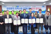 전남투데이 이현승 기자 | 장성군이 최근 지역 내 의료기관과 ‘퇴원 환자 지역사회 연계사업’ 업무협약을 체결했다. 장성군청 상황실에서 열린 협약식에는 김한종 군수와 고명숙 장성병원 이사장, 장원채 장성혜원병원장, 김경옥 장성공립노인전문요양병원 대표이사, 이승윤 백양요양병원 행정부장 등 10여 명이 참석했다. 이번 협약은 오는 27일로 예정된 의료·요양 통합돌봄사업 시행에 앞서, 병원 치료를 끝낸 환자가 가정 복귀 이후에도 돌봄 서비스를 받을 수 있도록 시스템을 갖추기 위해 추진됐다. 협약에 따라 5개 기관은 △퇴원 환자의 가정 복귀를 위한 의료·돌봄 통합지원 대상 연계 및 홍보 △지역주민 건강 증진을 위한 분야별 서비스 제공 및 기타 정보 공유 △통합지원서비스 대상자 발굴 등을 적극 협력할 예정이다. 협약 의료기관이 퇴원 예정 환자 가운데 신체 기능 등을 고려해 돌봄 서비스 대상자를 선별하면 장성군은 자체 조사를 통해 통합돌봄지원 대상자를 최종 선정하고, 필요한 의료·요양·돌봄 서비스를 제공하게 된다. 김한종 장성군수는 “의료·요양·돌봄이 유기적으로 연결된 통합돌봄체계를 차질 없이 구축