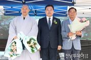 전남투데이 김길룡 기자 | 무안군 대한노인회 운남면분회(분회장 김영유)가 주관한 “2025년 제29회 운남면 노인의 날 기념식” 행사가 10월 3일 운남면 운남자재센터 일원에서 성황리에 개최됐다. 이날 비가 내린 와중에도, 어르신들의 노고에 감사하기 위한 행사가 2025년 제1회 돈세고 축제와 함께 개최되며 김산 군수를 비롯해 도·군의원과 지역 유관기관 및 사회단체장들도 참석해 자리를 빛냈으며, 운남면 노인복지에 기여한 여러 어르신도 함께 참여했다. 운남면 노인의 날 식전 공연으로 국악의 향연(국립남도국악원)이 펼쳐져 다채로운 우리 가락을 선보였다. 기념식에서는 평소 가정과 사회에서 존경받는 ▲ 모범 노인으로 김우진 어르신 ▲ 노인복지기여자로 보현정사 석도안스님에게 군수 표창이 있었으며 ▲장수 노인에 정양기, 김매화 어르신이 수상했다. 평소 운남면 노인복지 증진에 기여한 감사패를 ▲ 에덴지역아동센터 박상희 센터장 ▲ 운남면 박행기 주무관이 수상했으며, 행운권 추첨 등 돈세고 축제와 함께 다채로운 행사가 펼쳐져 어르신들이 즐거운 시간을 보냈다. 김영유 운남면분회장은 기념식에서 “돈세고 축