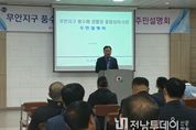 전남투데이 박세훈 기자 | 무안군은 지난 16일 무안읍사무소에서 지역주민과 관계 공무원, 사업 관계자 등이 참석한 가운데 ‘무안지구 풍수해생활권 종합정비사업 주민설명회’를 개최했다고 밝혔다. 이번 설명회는 무안지구 풍수해생활권 종합정비사업의 추진 배경과 사업 규모, 주요 계획 등을 주민들에게 설명하고 의견을 수렴하기 위해 마련됐다. 이날 설명회에서는 사업 개요와 추진 계획을 안내한 뒤 질의응답을 통해 다양한 주민 의견을 청취했다. 본 사업은 총 497억 원의 사업비를 투입해 국지성 폭우로 인한 반복적인 침수 피해를 예방하고 생활환경을 개선하는 것을 목표로 한다. 김산 무안군수는 “주민설명회에서 제시된 의견을 사업 추진 과정에 적극 반영해 침수 피해 예방과 생활환경 개선에 노력하겠다”고 말했다.