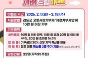 전남투데이 문경식 기자 | 진도군은 설 명절을 맞아 고향사랑기부제의 참여를 확대하고 지정기부사업을 홍보하기 위해 2월 1일부터 18일까지 ‘설맞이 세배 드림 이벤트’를 진행하고 있다. 이번 이벤트는 설 명절의 의미를 담아, 진도군 고향사랑기부제 지정기부사업에 10만 원 이상을 기부한 기부자를 대상으로, 추첨을 통해 특산품 2종(진도 홍주, 진도 곱창김)을 추가 제공해, 총 3종 이상의 진도 특산품을 제공하는 ‘세배 드림’ 행사다. 이에 따라 지정기부사업 기부자는 세액공제 혜택은 물론, 기부금 30% 상당의 답례품을 포함해 총 3종 이상의 특산품을 받을 수 있다. 진도군의 지정기부사업은 ‘보배섬 진도의 아이들을 지켜주세요!’ 사업으로, 진도군 지정병원의 소아청소년과 의료진에 대한 인건비를 지원해 지역 의료 기반(인프라)을 강화하기 위한 목적으로 추진되고 있다. 진도군은 이번 이벤트를 통해 지정기부사업에 대한 관심을 높이고, 기부금이 지역의 시급한 의료 현안을 해결하는 데 활용되도록 할 계획이다. 김희수 진도군수는 “설 명절을 맞아 기부의 의미를 느끼고 혜택을 누릴 수 있도록 상생 이벤트를
