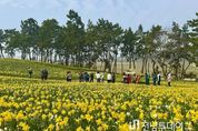 전남투데이 김용희 기자 | 신안군은 지난 4월 3일 개막한 ‘2026 섬 수선화 축제’가 이번 주말 절정기를 맞아 방문객들의 발길이 이어지고 있다고 밝혔다. 개막 전부터 이어진 관광객 수는 현재까지 7,000여 명에 달한다. 오는 4월 12일까지 이어지는 이번 축제는 중반을 지나면서 수선화 개화가 절정에 이르러, 선도 전역이 가장 화려한 황금빛 풍경을 선보이고 있다. 특히 주말 기간 방문객이 크게 증가할 것으로 예상되며, 축제의 분위기도 한층 고조될 전망이다. 현재 선도 일원에는 약 1,004만 송이의 수선화가 만개해 바다와 어우러진 장관을 연출하고 있으며, 주요 산책로와 포토존마다 관광객들의 발길이 끊이지 않고 있다. 노란 꽃길을 따라 걷는 체험과 함께 곳곳에서 사진 촬영을 즐기는 방문객들로 활기를 띠고 있다. 가족 단위 관광객에게 인기를 끌고 있는 ‘수선화 그림 그리기 체험’ 프로그램도 주말 동안 지속 운영되며, 아이들과 함께 봄의 정취를 느낄 수 있는 체험형 콘텐츠로 호응을 이어가고 있다. 또한 노란색 의상을 착용한 관광객들이 늘어나며 축제장 전체가 하나의 테마 공간처럼 연출되고 있다. 신안군