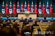 전남투데이 정홍균 기자 | 튀르키예를 국빈 방문한 이재명 대통령은 24일(현지시간) 앙카라 대통령궁에서 레제프 타이이프 에르도안 대통령과 양자회담을 통해 방산, 원자력, 바이오, 인프라, 인적·문화 분야 등에서 협력을 강화해 나가자는 데 뜻을 모았다. 양국 정상은 또 이러한 포괄적 협력을 원활히 추진하기 위한 '대한민국과 튀르키예공화국 간 전략적 동반자 관계에 관한 공동성명'을 채택했다. 이 대통령과 에르도안 대통령은 이날 단독회담에 이어 확대회담, 양해각서(MOU) 서명식을 순차적으로 가진 뒤 이 같은 내용을 담은 공동언론발표를 진행했다. 대한민국 대통령으로는 13년 만에 튀르키예를 국빈 방문한 이 대통령은 국부(國父)로 불리는 무스타파 케말 아타튀르크 영묘 헌화식과 대통령궁에서 열린 공식환영식에 참석한 후 에르도안 대통령과 1시간 43분에 걸쳐 정상회담을 했다. 이 대통령은 공동언론발표를 통해 "튀르키예의 한국전쟁 참전 75주년이자 저의 대통령 취임 첫해인 올해 '형제의 나라' 튀르키예를 방문하게 되어 매우 뜻깊게 생각한다"며 "양국은 2012년 '전략적 동반자 관계'를 체결하고 정무, 경