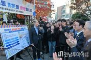 전남투데이 정홍균 기자 | 김민석 국무총리는 11월 26일 광주광역시 서구 동천동을 방문하여 지역 골목상권 활성화를 위해 추진 중인 ‘골목경제119 프로젝트’ 추진 현황을 점검하고, 골목주민・소상공인의 현장 목소리를 청취했다. ‘골목경제119 프로젝트’는 지난 11월 7일에 열린 참좋은지방정부협의회 주관의 ‘참좋은지방자치 정책대회’에서 국무총리상을 수상한 정책으로,광주 서구는 구 전역 18개 동을 골목형 상점가로 지정하고, 관내 온누리상품권 가맹점을 대폭 확대하여 주민들이 일상 소비에서 온누리상품권을 폭넓게 활용할 수 있도록 지원해왔다. 김 총리는 동천동 골목상권 입구에서 김이강 서구청장으로부터 ‘골목경제119 프로젝트’ 추진 현황과 성과 등을 보고받고, 이어서 동천동 골목상권 내 과일가게, 카페, 분식집 등을 방문하여, 온누리상품권으로 상품을 구매하면서 상점주인 및 주민들과 대화를 나눴다. 김 총리는 현장에서 민생의 기초인 골목이 살아나야한다고 강조하며, 지역화폐와 온누리상품권의 장점이 잘 조합되어 우리 민생 경제가 살 수 있도록 최선을 다하겠다고 말했다.