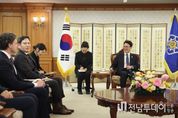 전남투데이 정홍균 기자 | 김민석 국무총리는 3월 23일 오전 정부서울청사에서 마이클 해리스(Michael Harris) 뉴욕증권거래소 부회장을 접견했다. 뉴욕증권거래소 부회장이 한국을 방문하여 정부 고위급을 만난 것은 처음으로, 정부의 강력한 자본시장 개선 노력에 대해 부회장이 깊은 관심을 보이며 만남이 성사됐다. 김 총리는 글로벌 금융시장 흐름을 이끄는 세계 최고의 자본시장 플랫폼인 뉴욕증권거래소 부회장의 대한민국 방문을 환영한다고 하면서 한ㆍ미 자본시장 발전을 위한 한국 정부와 뉴욕증권거래소 간 구체적인 협력방안을 모색하길 희망한다고 언급했다. 해리스 부회장은 ‘25.9월 이재명 대통령께서 월가에서 대한민국 투자 서밋을 주재하신 것은 한국 자본시장의 방향성을 보여주는 중요한 신호로서, 월가와 글로벌 투자자들에게 신뢰를 주는 강한 인상을 남겼다고 언급했다. 이러한 점은 뉴욕증권거래소에 한국기업들이 상장을 할 때도 긍정적 영향을 줄 수 있으며, 거래소도 한국 기업에 대해 어떤 혜택을 줄 수 있을지 고민해보겠다고 답했다. 한편, 김 총리는 자본시장 체질 개선에 대한 정부의 노력과 개선