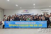 전남투데이 김경민 기자 | 광주광역시는 26일 빛고을국민안전체험관에서 신규 안전보안관과 관련 업무 담당자 등 50명을 대상으로 ‘2025년 하반기 안전보안관 역량강화 교육’을 실시했다. 이번 교육은 이론교육과 체험교육을 융합해 안전보안관의 실질적 대응 능력 강화를 꾀했으며 ▲안전보안관 임무 및 역할 소개 ▲우수사례 공유 ▲건설현장 안전수칙 교육 ▲화재·생활·응급 안전 체험교육 순으로 진행했다. 건설현장 안전수칙 교육은 산업안전보건공단 전문 강사가 최근 현장 사고 사례를 중심으로 주요 안전수칙을 설명해 호응을 얻었다. 체험교육은 화재안전·생활안전·응급안전 3개 분야로 나눠 진행했다. 실제 위급 상황을 가정한 실습으로 참가자들이 ▲화재 발생 시 대피요령 ▲화재 초기 대응법 ▲지하철 사고 대응법 ▲승강기 갇힘 사고 대응법 ▲가스 안전수칙 ▲심폐소생술 실시 요령 등을 자연스럽게 익히도록 했다. 광주에는 348명의 안전보안관이 활동 중이다. 광주시 안전보안관들은 2025년 1~10월 간 안전취약지역 예찰활동 33회, 안전신문고를 활용한 생활 불편·위험요소 신고 1만3925건, 안전문화 캠페인 36회, 안전무