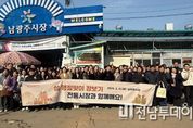 전남투데이 김경민 기자 | 광주문화재단은 2월 13일 설 명절을 앞두고 지역 전통시장 활성화와 지역경제 상생을 위해 남광주시장에서 임직원이 참여하는 전통시장 장보기 행사를 진행했다. 이번 행사는 설 명절을 맞아 임직원들이 직접 전통시장을 방문해 명절 준비 물품을 구매함으로써 전통시장 이용을 장려하고, 지역 상인들과의 교류를 통해 따뜻한 명절 분위기를 조성하고자 마련됐다. 이날 행사에는 광주문화재단 임직원 약 80여 명이 참여해 온누리상품권을 활용하여 가족과 함께 나눌 명절 음식과 생활용품을 구매하는 등 전통시장 소비 촉진에 동참했다. 광주문화재단 배동환 사무처장은 “전통시장은 지역 주민의 일상과 정이 살아 있는 공간”이라며, “이번 장보기 행사가 지역 상인들에게 보탬이 되고, 따뜻한 설 명절 분위기를 나누는 계기가 되길 바란다”고 말했다.