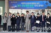 전남투데이 김경민 기자 | 광주전남 행정통합을 주도할 민간협력기구가 닻을 올렸다. 광주·전남지역 각계 대표 500명이 320만 시도민의 뜻과 역량을 하나로 결집해 우리나라 최초 통합 광역지방정부 탄생에 앞장서겠다고 결의를 다졌다. 광주광역시와 전라남도는 16일 오후 3시 김대중컨벤션센터에서 ‘광주‧전남 행정통합 추진 범시도민 협의회’ 발대식을 열고, 대한민국 최초의 통합 광역지방정부 탄생을 위한 시도민 역량 결집에 나섰다. 협의회 발대식에는 강기정 광주시장과 김영록 전남지사를 비롯해 시·도교육감, 시·도의회 의원, 협의회 공동대표 및 위원 등 500여명이 참석했다. 이날 행사는 ▲공동대표 10명에 대한 위촉장 수여 ▲행정통합 추진경과 및 소통방안 ▲특별법안 내용 설명 ▲범시도민 결의문 낭독 ▲퍼포먼스 및 기념촬영 순으로 진행됐다. ‘광주·전남 행정통합 추진 범시도민 협의회’는 광주시와 전남도, 시·도교육청, 시·도의회, 시민사회단체, 경제·산업계, 학계·교육계, 노동계, 청년·여성·원로 대표 등 다양한 분야의 지역 인사 500명이 참여해 행정통합 공론화와 사회적 합의를 이끄는 역할을 맡는다. &nb
