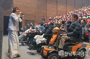 전남투데이 김경민 기자 | 광주광역시 서구는 7일 서빛마루문화예술회관에서 중증장애인과 가족을 위한 베리어프리 공연 ‘김장훈의 누워서 보는 콘서트’를 개최하며 공감과 배려로 채운 감동의 무대를 선사했다. ‘누워서 보는 콘서트’는 중증장애인이 신체적 제약 없이 공연을 즐길 수 있도록 설계된 대표적인 베리어프리 문화공연이다. 서구는 이날 공연 무대와 객석 사이 공간을 ‘특별관람석’으로 조성해 중증장애인과 휠체어 이용자들이 누운 상태에서도 편안하게 공연을 관람할 수 있도록 했다. 특히 이번 공연은 지난해 12월 기부천사로 알려진 가수 김장훈이 서구아카데미 강연자로 서구를 방문한 이후 ‘착한도시 서구’의 구정 철학과 정책에 깊은 공감을 나타내며 추진하게 됐다. 서구의 고액 기부자 모임인 서구아너스는 이번 공연을 위해 3700만 원을 후원했으며 가수 김장훈도 재능기부로 당초 1회로 예정됐던 공연을 2회로 확대해 운영했다. 서구는 주요 보행 동선마다 안전요원을 배치하고 이동과 관람이 불편하지 않도록 현장 운영에 만전을 기했다. 또한 일반 시민들이 1만 원으로 공연을 관람할 수 있는 ‘공감좌석’을 운영해 마련된