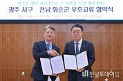 전남투데이 김경민 기자 | 광주광역시 서구는 10일 전라남도 화순군청에서 화순군과 우호교류 협약을 체결하고 생활권을 공유하는 이웃 지자체 간 협력과 공동발전을 위한 상생 체계를 구축하기로 했다. 이날 협약식에는 김이강 서구청장과 구복규 화순군수를 비롯해 양 지자체 간부 공무원들이 참석해 지속 가능한 교류‧협력과 지역 발전을 위한 협력 의지를 다졌다. 이번 협약은 지리적으로 인접해 사실상 하나의 생활권으로 연결된 양 지역이 행정‧문화‧관광‧체육‧복지 등 생활 전 분야에서 교류와 협력을 강화해 주민들이 체감할 수 있는 실질적인 상생 모델을 구축하기 위해 추진됐다. 협약에 따라 양 지자체는 구‧군민의 날 등 대표 문화행사에 적극 참여해 교류를 활성화하고 주민들이 양 지역의 관광‧체육시설을 편리하게 이용할 수 있도록 협력 방안을 마련해 나갈 계획이다. 특히 화순군은 서구 주민을 대상으로 화순파크골프장 등 주요 체육시설 이용료 할인 혜택을 제공하고 서구는 화순 지역 특산물 이용과 홍보에 적극 협력하는 등 상호 호혜적 교류를 확대해 나간다는 방침이다. 김이강 서구청장은 “화순군은 늘 가까이에서 오