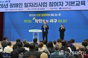 전남투데이 김경민 기자 | 광주광역시 서구가 장애인의 사회참여 확대와 자립기반 강화를 위한 ‘2026년 장애인일자리사업’을 추진한다. 서구는 25일 서구청 들불홀에서 장애인일자리사업 참여자 160여 명을 대상으로 안전보건 및 직무 소양 교육을 실시했다. 이번 교육은 참여자들의 직무 이해도를 높이고 산업재해를 예방하기 위해 마련됐다. 장애인일자리사업은 취업 취약계층인 장애인에게 맞춤형 일자리를 제공함으로써 소득 보장과 사회참여 기회를 확대하는 사업이다. 올해는 일반형(전일제·시간제)과 복지일자리(참여형) 등 다양한 일자리에 지체, 청각·언어, 시각 장애인 등 160여 명이 참여한다. 참여자들은 동 행정복지센터와 사회복지시설 등에서 행정업무 보조, 환경정리, 우편물 분류, 급식 지원 등 공공서비스 지원 업무를 수행하게 된다. 특히 서구는 지난해 주민 호응이 높았던 청각·언어장애인 대상 정리·수납 특화사업은 참여 인원을 확대하고 일회용품 사용 모니터링 사업을 새로 발굴·추가하는 등 직무 영역을 넓혔다. 또한 ‘착한도시사회적협동조합’ 등 민간기관과 협력체계를 구축해 사업의 전문성과 효율성을 높였다. 이날 교육은 안전보