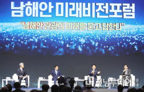전남투데이 김완규 기자 | 김영록 전라남도지사는 4일 오후 경남 창원컨벤션센터에서 열린 남해안 미래비전 포럼에서 전남을 중심으로 부산, 경남과 함께하는 ‘세계 속의 남해안 관광벨트 성공 비전’을 제시했다.