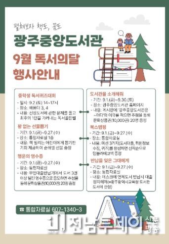 전남투데이 정홍균 기자 | 광주중앙도서관과 분관인 최상준도서관이 9월 독서의 달을 맞아 ‘펼쳐보자 책도, 꿈도’를 주제로 26개의 다양한 행사를 마련했다고 1일 밝혔다.