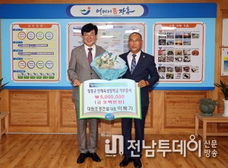 전남투데이 김완규 기자 | 이복기 대원조경건설 대표가 26일 장흥군에 5백만 원의 장학금을 기부했다.