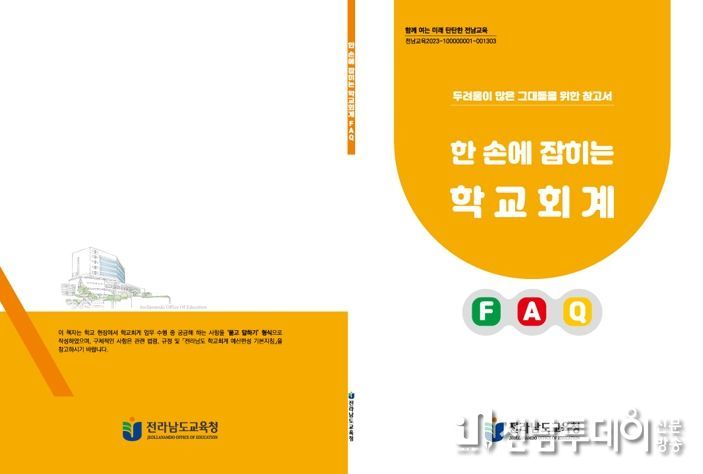 전남투데이 정홍균 기자 | 전라남도교육청이 각급 학교에서 학교회계를 어렵게 생각하는 학교구성원의 눈높이에 맞춘 ‘두려움이 많은 그대들을 위한 참고서 - 한 손에 잡히는 학교회계 FAQ’를 제작해 배부한다.