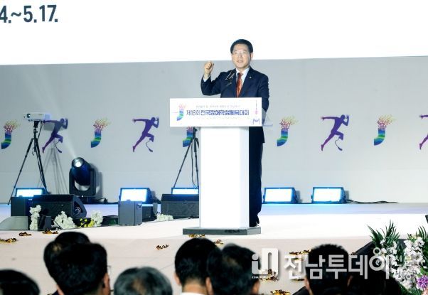 김영록 전남도지사는 환영사를 통해 “어려운 여건에서도 포기하지 않고 목표를 향해 끊임없이 도전하는 선수들에게 뜨거운 격려와 응원의 박수를 보낸다”며 “이번 체전 ‘생명의 땅 전남 함께 날자 대한민국’이란 슬로건처럼 국민 모두가 서로 손잡고 더 나은 미래로 힘차게 날아오르길 기대한다”고 말했다.