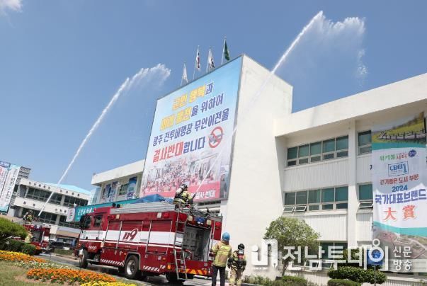 전남투데이 안철우 기자 | 전남 무안군은 29일 무안군청에서 무안소방서와 화재 대응 능력 강화를 위한 소방 합동훈련을 진행했다.