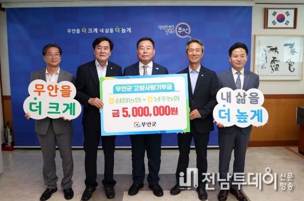 전남투데이 안철우 기자 | 전남 무안군은 31일 무안군 삼향농협이 영암군 낭주농협과 고향사랑기부제의 성공적인 제도 안착과 지역 상생발전을 위해 상호 교차 기부에 동참했다고 밝혔다.