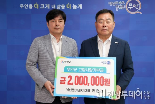 전남투데이 안철우 기자 | 전남 무안군은 ㈜선운이앤지 전홍진 대표가 고향사랑기부금 200만 원을 기탁했다고 14일 밝혔다.