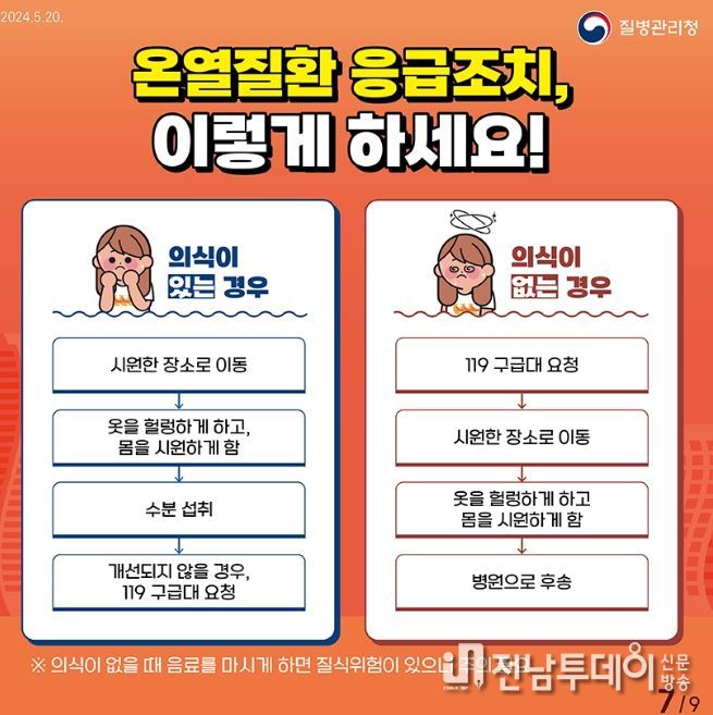 온열질환은 ▲규칙적으로 물 자주 마시기 ▲외출 시 햇볕 차단하기(양산, 모자 등) ▲헐렁하고 밝은색의 가벼운 옷 입기 ▲더운 시간대에는 야외작업, 운동 자제하고 시원한 곳에 머물기 ▲기온, 폭염특보 등 기상 상황 수시로 확인하기 등의 건강 수칙 실천을 통해 예방할 수 있다.