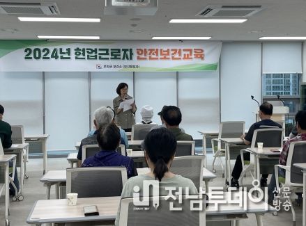 전남투데이 안철우 기자 | 전남 무안군은 20일 무안군 보건소에서 방역 소독 근로자, 구내식당 조리원, 읍·면 보건지소 공공근로자 등 22명을 대상으로 안전보건교육을 실시했다.