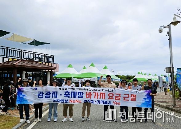전남투데이 안철우 기자 | 전남 무안군은 지난 21일부터 23일까지 진행된 제10회 무안황토갯벌축제에 관계부서, 무안전통시장상인회, 물가모니터요원 등 20여 명이 참여하여 바가지요금 근절 및 착한 소비 캠페인을 전개했다.