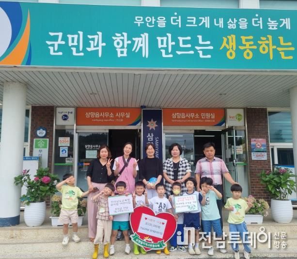 전남투데이 안철우 기자 | 무안군 삼향읍은 27일 삼향읍 소재 전남교육청 꿈자람어린이집에서 교사와 원아 등 13명이 방문해 바자회 수익금 23만 5천 원을 기부했다고 밝혔다.