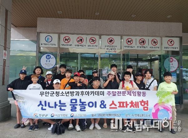 전남투데이 안철우 기자 | 전남 무안군 청소년방과후아카데미는 지난 22일 청소년 19명을 대상으로 나주중흥골드스파에서 ‘신나는 물놀이 · 스파체험’ 주말 프로그램을 운영했다.