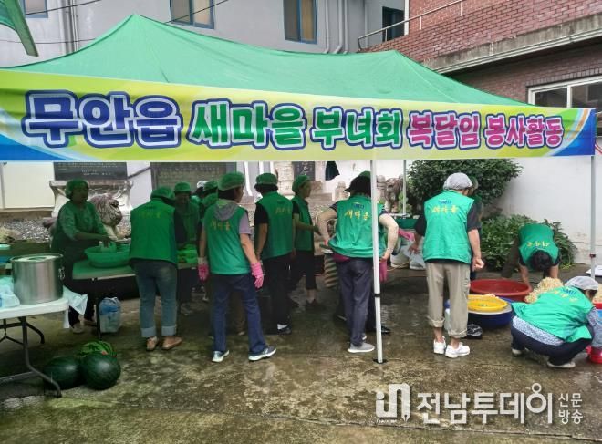 전남투데이 안철우 기자 | 무안군 무안읍 새마을부녀회는 9일 초복을 맞아 무안읍 노성원(분회경로당)에서 관내 어르신 80여 명에게 닭백숙을 대접하였다.