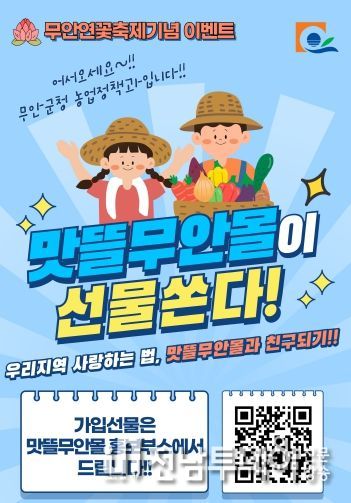 행사는 무안연꽃축제 기간인 7월 25일부터 28일까지 축제장 내 홍보부스에서 진행되며, 맛뜰무안몰 신규 회원 가입 시 장바구니, 부채 등 다양한 선물을 증정한다.