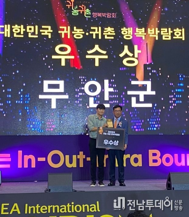 전남투데이 안철우 기자 | 전남 무안군은 지난 19일부터 22일까지 4일간 일산 킨텍스에서 열린 ‘2024 대한민국 귀농귀촌 행복박람회’에 서 귀농귀촌유치홍보에 적극 참여한 공로를 인정받아 우수상을 수상했다.