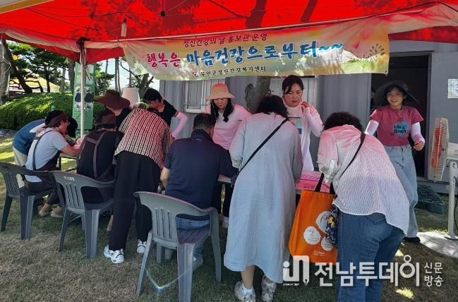 정신건강 및 자살예방사업 홍보관에서는 우울증 선별검사, 정신건강복지센터 사업을 홍보하고 군민들의 우울, 스트레스, 자살 등 정신질환에 대한 예방·치료에 대한 안내와 올바른 대처 방법을 공유하여 몸과 마음이 건강한 무안군을 만들기 위하여 진행했다.