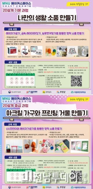 현재 생활창업 3기 교육과정 신청자를 모집하고 있으며, ‘MNU메이커스페이스’ 카카오채널을 추가하면 공고 중인 프로그램의 내용과 신청 방법을 확인할 수 있다. 또한 교육 외에도 시설과 장비 이용 등을 지원하고 있으며, 기타 사항은 MNU메이커스페이스로 문의하면 된다.