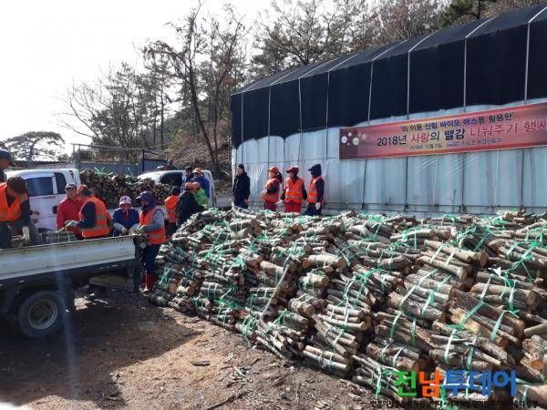 사랑의 땔감 나눠주기 행사는 숲 가꾸기 사업 등 산림 사업으로 발생하는 고사목, 나뭇가지 일부를 지역주민에게 난방용 땔감으로 사용토록 지원하는 사업이다.