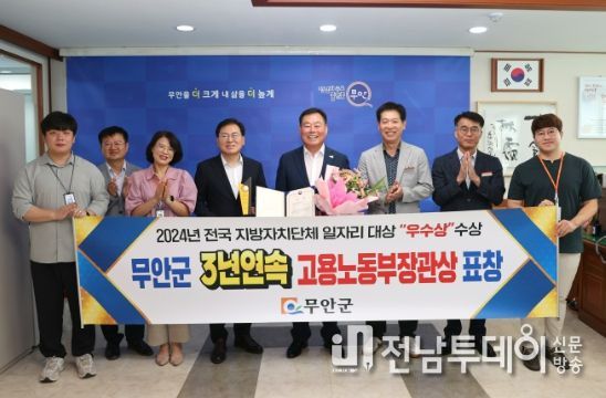 전남투데이 안철우 기자 | 전남 무안군이 고용노동부 주관 ‘2024년 전국 지방자치단체 일자리대상 시상식’에서 일자리 공시제 부문에서 3년 연속 우수 자치단체 표창의 성과를 거뒀다.