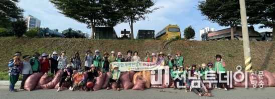 전남투데이 안철우 기자 | 무안군 무안읍 새마을부녀회는 16일 무안읍 제일병원 인근에서 행복홀씨 사업의 일환으로 8월 풀메기 활동에 나섰다.