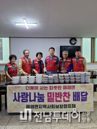 사랑 나눔 밑반찬 지원사업은 해제면 지역사회보장협의체 특화사업의 하나로 오는 12월까지 건강관리에 취약한 독거노인, 장애인 세대에 매월 1회 반찬을 만들어 제공하는 사업이다.