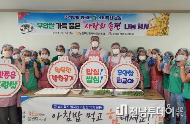 전남투데이 안철우 기자 | 무안군 운남면 새마을부녀회와 새마을지도자회는 3일 곧 다가올 추석을 맞이하여 사랑의 송편 나눔 행사를 개최했다.