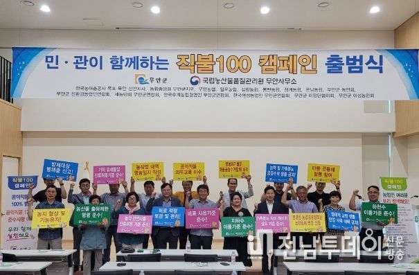 전남투데이 안철우 기자 | 국립농산물품질관리원 무안사무소와 무안군은 주요 농업인단체가 참여한 가운데 농가 경영안정과 농업·농촌 유지·보존 등 공익직불제 가치에 대한 농업인 인식제고 및 의무 준수사항 실천 유도를 위해 2024.9.9.(월) 민·관이 함께하는 ‘직불100’ 캠페인 출범식을 개최하였다.