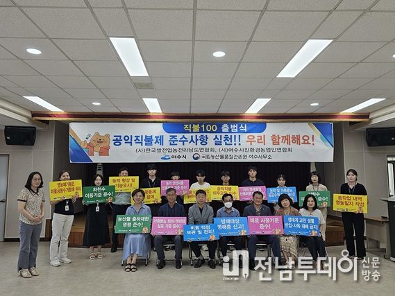 전남투데이 김길룡 기자 | 여수시(시장 정기명)는 농가 경영안정 및 농업·농촌의 공익기능 증진을 위해 국립농산물품질관리원 전남지원 여수사무소(사무소장 김선종, 이하 농관원 여수사무소), 농업인단체와 ‘직불100 캠페인’을 출범했다.